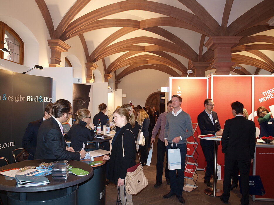 Die Veranstaltung war ein voller Erfolg und wurde sowohl von Studierenden als auch von den Juristen, die ihr Studium bereits abgeschlossen haben, sehr gut angenommen. 16 Aussteller, darunter viele Kanzleien, Wirtschaftsunternehmen sowie das OLG Bamberg, präsentierten sich an verschiedenen Messeständen und standen für die Besucher von 10 bis 15 Uhr zur Verfügung.