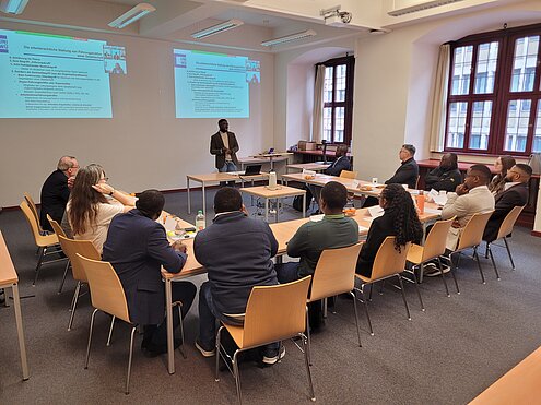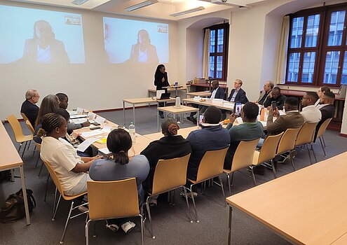 Der zweite Teil des Forums befasste sich mit dem (internationalen) Zivil- und Zivilverfahrensrecht. Hier ging es um die Regulierung privater Versicherungen in der Demokratischen Republik Kongo (Bénie Ikupasa Anginga, Gießen) sowie um die Auswirkungen von Systemen künstlicher Intelligenz auf die Streitbeilegung in klassischen Rechtsinstitutionen Afrikas aus der Perspektive des internationalen Privat- und Zivilprozessrechts (Gilbert Katanda; Kinshasa/Würzburg). Dieser Vortrag wurde im Übrigen online aus dem kürzlich von Prof. Manzanza in Kinshasa eröffneten „Deutschen Haus“ übertragen.
