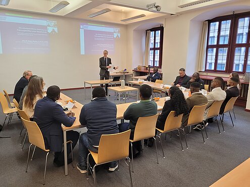 Am Freitag, den 5. Dezember 2025, fand an der Julius-Maximilians-Universität Würzburg das Kongo Forum Junge Rechtswissenschaft statt. Die JMU Würzburg hat sich in den vergangenen Jahren zu einem wichtigen Anlaufpunkt für aus dem Kongo stammende Nachwuchswissenschaftlerinnen und Nachwuchswissenschaftler, insbesondere im Bereich der Rechtswissenschaften, entwickelt. Ziel des Forums war es, den Austausch untereinander sowie mit deutschen Wissenschaftlerinnen und Wissenschaftlern zu vertiefen und so den wissenschaftlichen Dialog zu fördern.