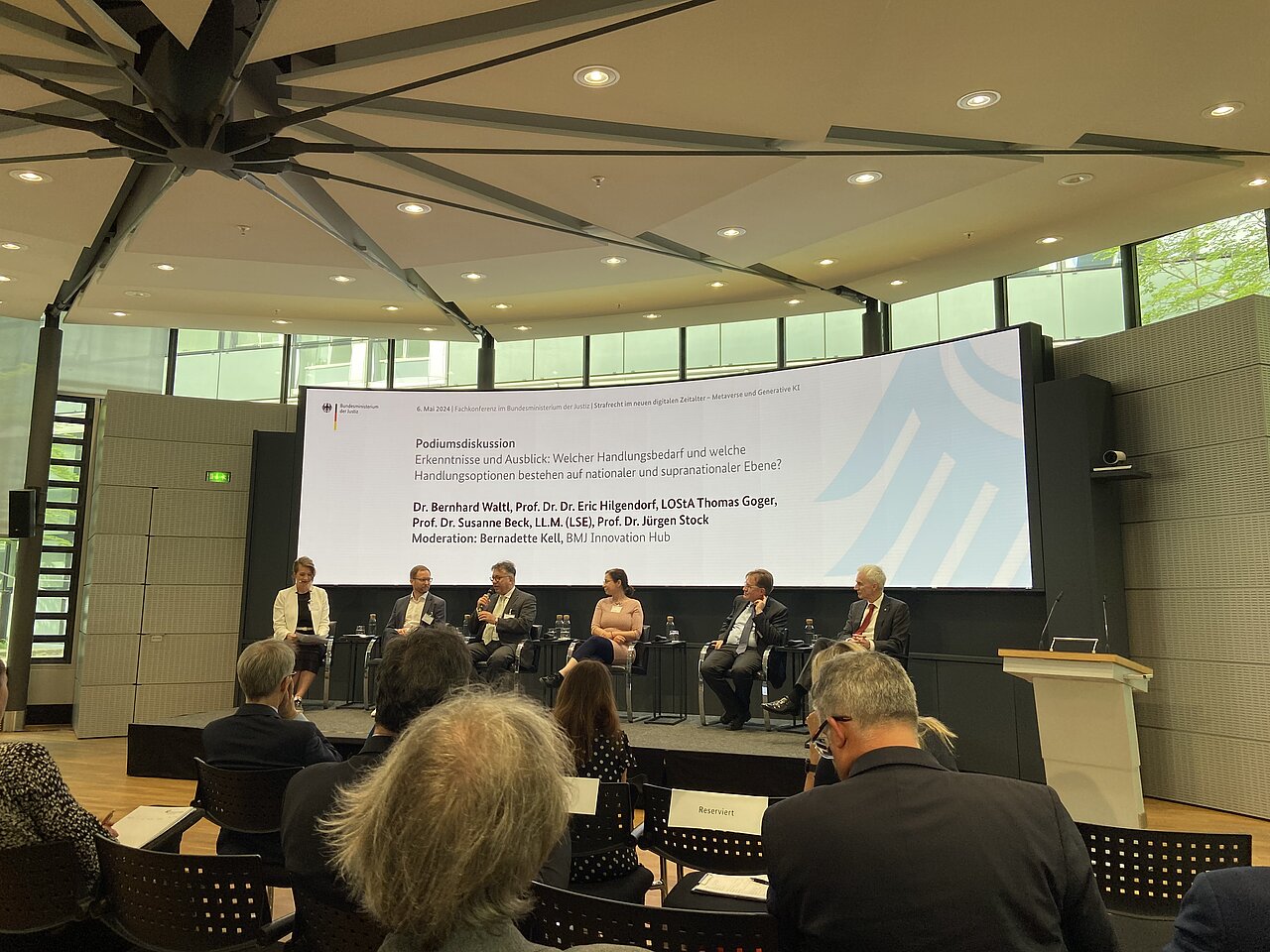Neben einigen Experten aus der Kriminaltechnik, Staatsanwaltschaft und Justiz war auch Prof. Hilgendorf eingeladen. Nach der Eröffnung durch Bundesjustizminister Dr. Marco Buschmann und einer Keynote des bayrischen Justizministers Georg Eisenreich wurde über die Missbrauchsrisiken, aber auch die Chancen durch generative KI und das Metaverse diskutiert.