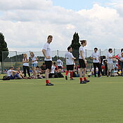 Für „Die Bienchen“ lief es zunächst nicht ganz rund: ein mageres Unentschieden im ersten Spiel gegen den Lehrstuhl Brinktrine setzte das Team der selbsternannten Favoriten gehörig unter Druck. War die Vorbereitung nicht hart genug? Wurde das Training nicht ernst genug genommen? Hatten die Trainer Fabisch und Pfeffer auf die richtigen Leute gesetzt? Erst durch eine erhebliche Leistungssteigerung im zweiten Spiel konnte das Team um Kapitän Jocham erstmals die Kräfteverhältnisse klarstellen. Durch eine beherzte Leistung konnten die „Schwarzen Bestien“ niedergerungen werden. Die darauffolgende Niederlage im dritten Gruppenspiel gegen den späteren Turniersieger „Team Vonhausen“ hätte wohl nicht besonders schwer gewogen, wäre es eine verdiente Niederlage gewesen. Doch die Bienchen verschenkten gute Torchancen. Angetrieben von den Schlachtrufen Professor Biens wurde das Team immer wieder vergebens nach vorne getrieben. Durch ein unglückliches Tor verschenkte man letztendlich bereits in dieser frühen Phase des Turniers den Gruppensieg. Ein Sieg gegen das Team Schuster musste her. Gesagt, getan: in einer Galavorstellung deklassierten die Bienchen den Gegner. Durch die pfeilschnellen Inceoglu und Keller wurde der Gegner immer wieder überrascht. Durch gekonntes Kombinationsspiel über Keller und Jocham gelang es immer wieder, nach vorne durchzustoßen und für Gefahr im gegnerischen 16er zu sorgen. Auch das Flügelspiel, meist durch Hellmann über die rechte Seite eingeleitet, funktionierte nun besser. Ein Fingerzeig an die Konkurrenz! Der zweite Gruppenplatz war gesichert. Nun mussten die Bienchen gegen die technisch starken „Allstars“ im Halbfinale auf den Rasen. Von Beginn an merkte man den Bienchen den Siegeswillen an. Durch eine hochkonzentrierte Defensivleistung rund um Abwehrchef Geismann und aufgrund der nötigen Schlitzohrigkeit in der Offensive gelang es dem Team um den brillanten Kapitän Jocham bald in Führung zu gehen. Bis zum Schluss hielt vor allem Redel im Tor der Bienchen die Führung fest: durch überragende Paraden scheiterten die Allstars mit ihren verzweifelten Fernschüssen immer wieder am überragenden Bienchenkeeper. Aber auch die Defensivleistung der drei Damen Schmidt, Shandy und Friedrich, die genauso wie Rummel durch gutes Stellungsspiel in der Defensive glänzten, war ein wichtiger Faktor für den hochverdienten Finaleinzug. Während des ganzen Spiels merkte man den inneren Zusammenhalt im Team und die gute Chemie zwischen den einzelnen Akteuren. Jeder einzelne Spieler stellte sich mit vollem Einsatz in den Dienst der Mannschaft und trug damit zu einem gelungenen Turnierergebnis bei.