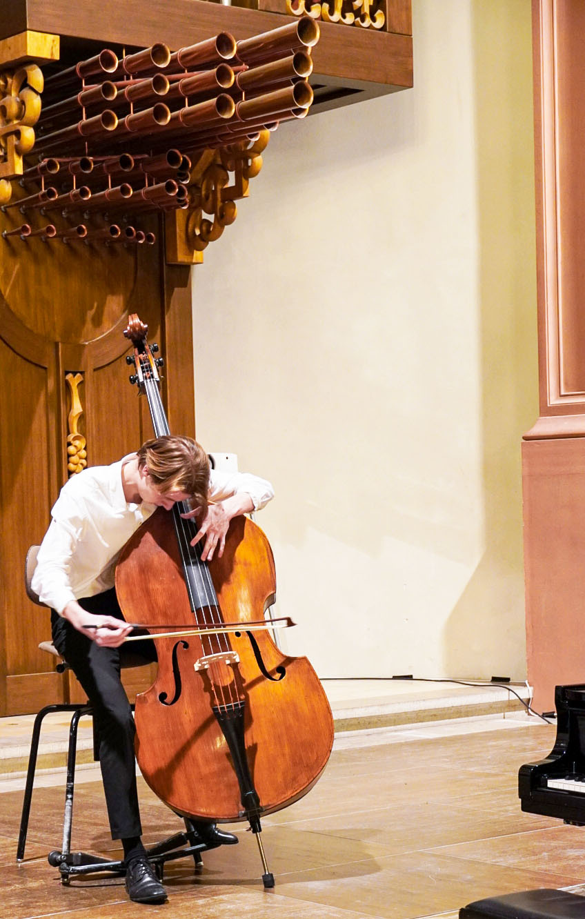 Jakob Ibach bewies, dass sich der Kontrabass hervorragend auch als Solo-Instrument eignet und begeisterte das Publikum mit seinen „Motiven für Kontrabass-Solo“ von Emil Tabakov.