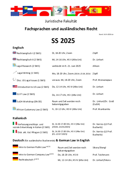 Vorbereitungskurs: Mo, 06.10.2025, 10-13 Uhr, Hörsaal IV (Alte Uni)